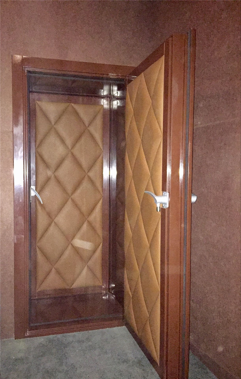 隔声门门框与墙壁及顶使用的隔音板的结构基本相同,整扇门是以双重磁性声响衬垫或通过相应的密封条来达成声响上的密闭性。